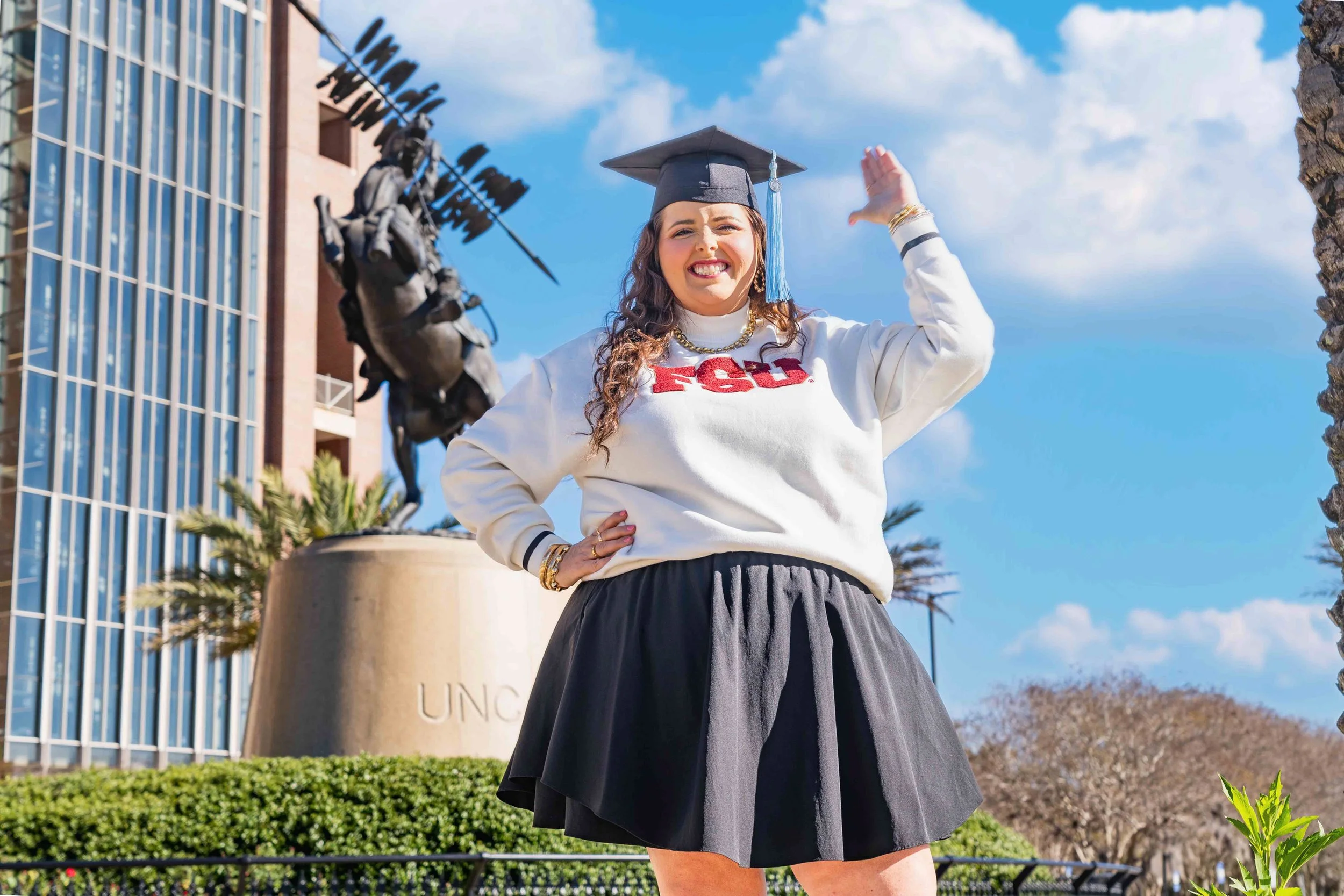 Leigh's graduation photography session turned out to be a truly memorable experience, beautifully capturing her significant milestone in life. Choosing the Golden Grad Package allowed us to take full advantage of the features it offered, starting our exciting shoot at Westcott Fountain, where the vibrant atmosphere perfectly highlighted her impressive achievement. Afterward, we moved to Doak Campbell Stadium and Langford Green, where we took advantage of the stunning backdrop to capture some precious candid moments. Between outfit changes, I got to know her parents. Leigh and her family have been die-hard FSU fans for years. It was truly a pleasure to be trusted with these grad images!