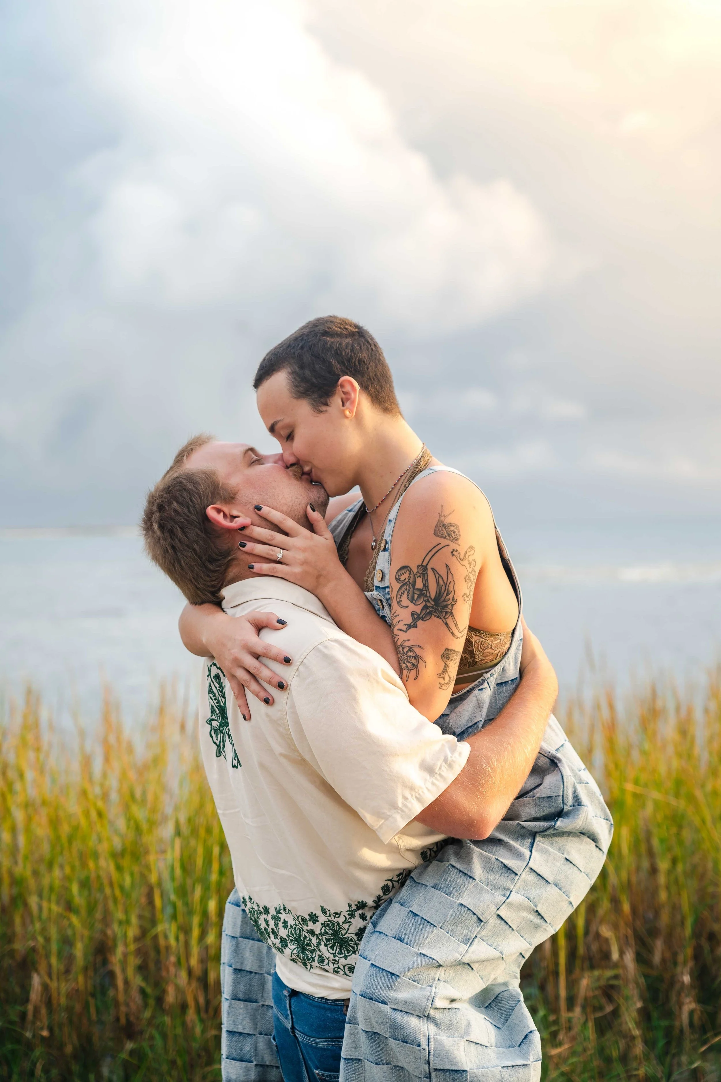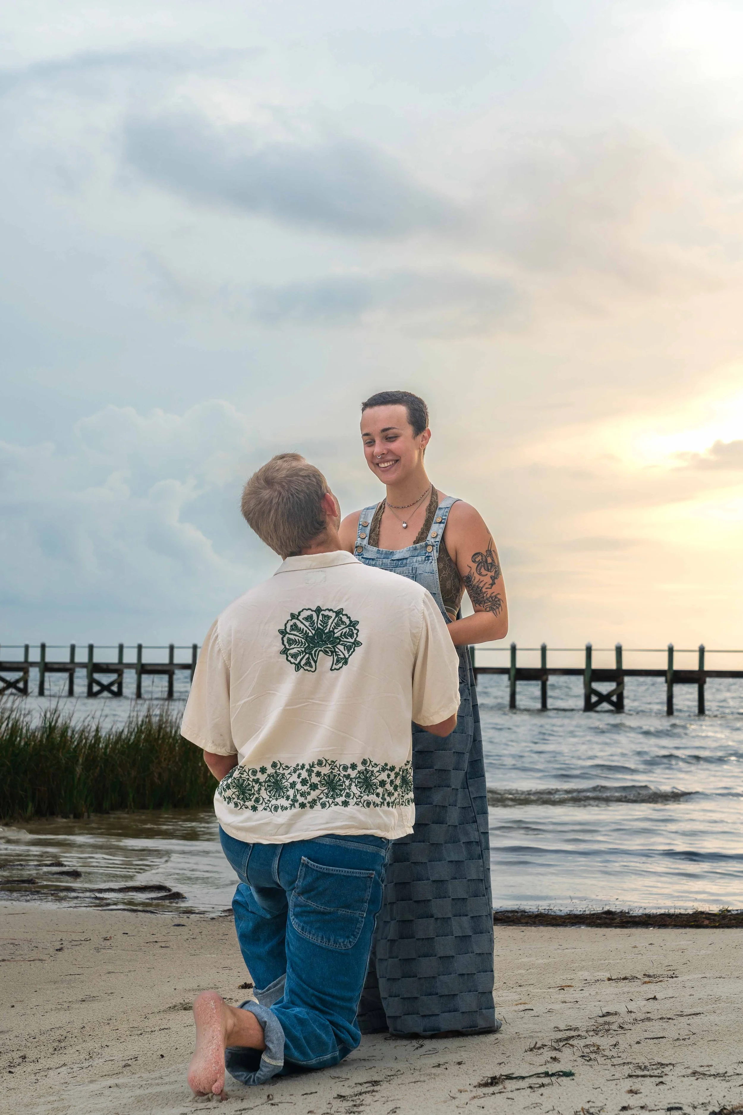 Some love stories come full circle, and Angus and Aislyn’s engagement session on the beaches south of Panacea was a perfect example. I have known Angus for a few years now, so when he reached out to me to photograph their proposal and engagement I was delighted to be given the honor. He had kept this a secret from her for months, so planning for the shoot was done in the background! We met at Aislyn’s family beach house, a place filled with years of happy memories and quiet walks together. We started shooting just before sunset, and the passing rain left behind a sky full of texture and color. The soft light and drifting clouds created a dramatic yet peaceful backdrop that beautifully matched the emotion of the moment. Every frame carried that unmistakable mix of joy, love, and calm coastal charm.